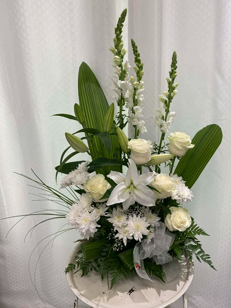Accueil / Funéraires / Arrangement funéraire 12 Arrangement funéraire 12 Catégorie : Funéraires Num. produit (ID): #860 En Savoir Plus Produits apparentés Arrangement funéraire 4 Arrangement funéraire 20 Arrangement funéraire 19