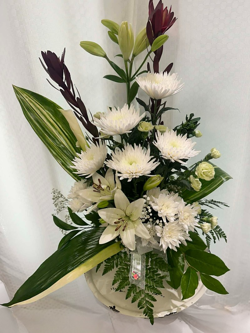 Accueil / Funéraires / Arrangement funéraire 14 Arrangement funéraire 14 Catégorie : Funéraires Num. produit (ID): #858 En Savoir Plus Produits apparentés Arrangement funéraire 21 Arrangement funéraire 5 Arrangement funéraire 17