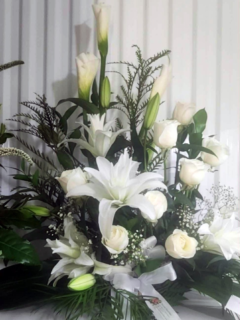 Accueil / Funéraires / Arrangement funéraire 2 Arrangement funéraire 2 Catégorie : Funéraires Num. produit (ID): #870 En Savoir Plus Produits apparentés Arrangement funéraire 8 Arrangement funéraire 4 Arrangement funéraire 25