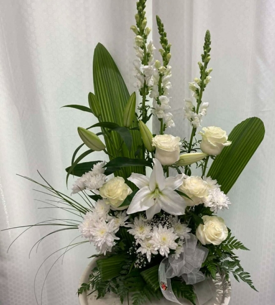 Accueil / Funéraires / Arrangement funéraire 21 Arrangement funéraire 21 Catégorie : Funéraires Num. produit (ID): #851 En Savoir Plus Produits apparentés Arrangement funéraire 26 Arrangement funéraire 16 Arrangement funéraire 12